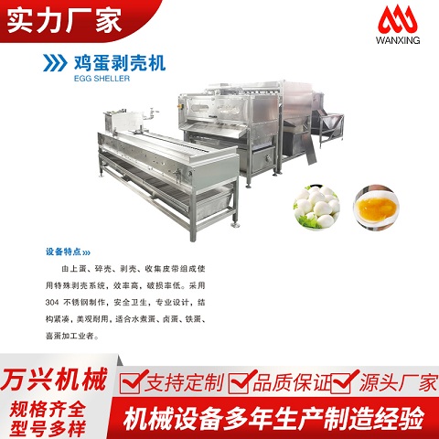 由上蛋、碎殼、剝殼、收集皮帶組成使用特殊剝殼系統(tǒng),效率高,破損率低。采用304 不銹鋼制作,安全衛(wèi)生,專(zhuān)業(yè)設(shè)計(jì),結(jié)構(gòu)緊湊,美觀耐用,適合水煮蛋、鹵蛋、鐵蛋、喜蛋加工業(yè)者。